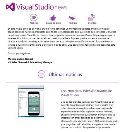 También el área de desarrollo de Microsoft ha confiado en TripleBé para dirigir su comunicación mensual a clientes y partners a través de contenidos relacionados con el mundo del desarrollo, en clave tecnológica y de negocio.